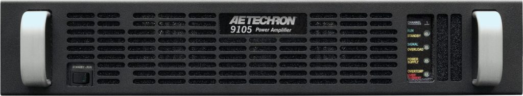 AE Techron’s 9100 Series amplifiers are 200Vp, DC-to-250 kHz capable amplifiers that offer a unique combination of switch-mode efficiency and linear-amplifier-like fidelity in a single, compact package. They are able to drive virtually any type of load without a reduction in rated power, with low distortion and low DC drift. They are also fast enough to meet 7µs surge and dropout requirements.